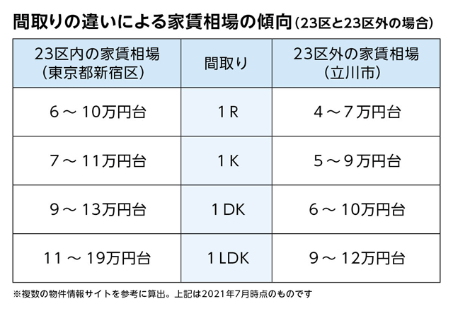 東京は想像どおり、地方に比べて家賃相場は高くなっています。下の資料を参考に解説します。